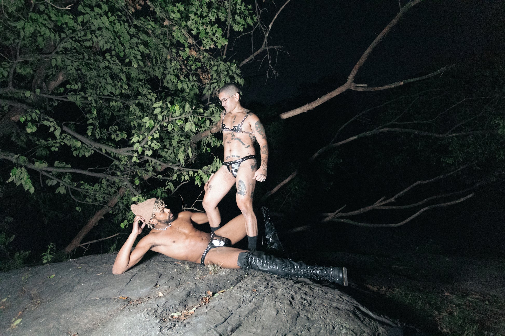 For the guys who treat their chest like prime real estate. Black leather laser-cut with reclining male figures, connected by nickel-plated ball chain that leaves temporary marks when pressed against you. The harness adjusts at three points to accommodate different builds and different positions, with leather that handles sweat, spit, and whatever else Saturday night brings. This is what you wear when you want to skip the small talk at Folsom, when your Grindr profile needs updating, when vanilla isn't on the menu.